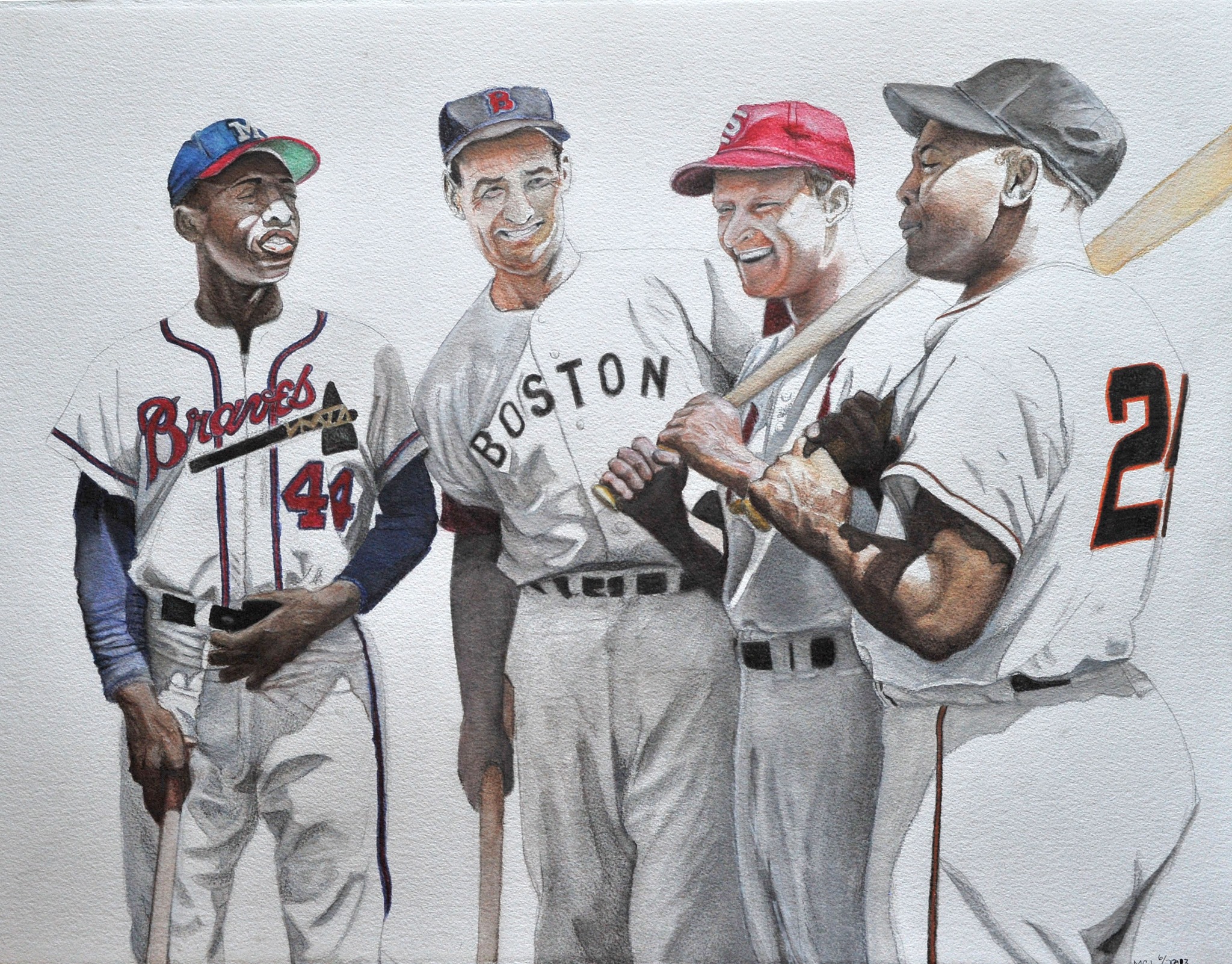 HANK AARON, TED WILLIAMS, STAN MUSIAL, WILLIE MAYS | WATERCOLOR ON ARCHIVAL PAPER | PRICE UPON REQUEST